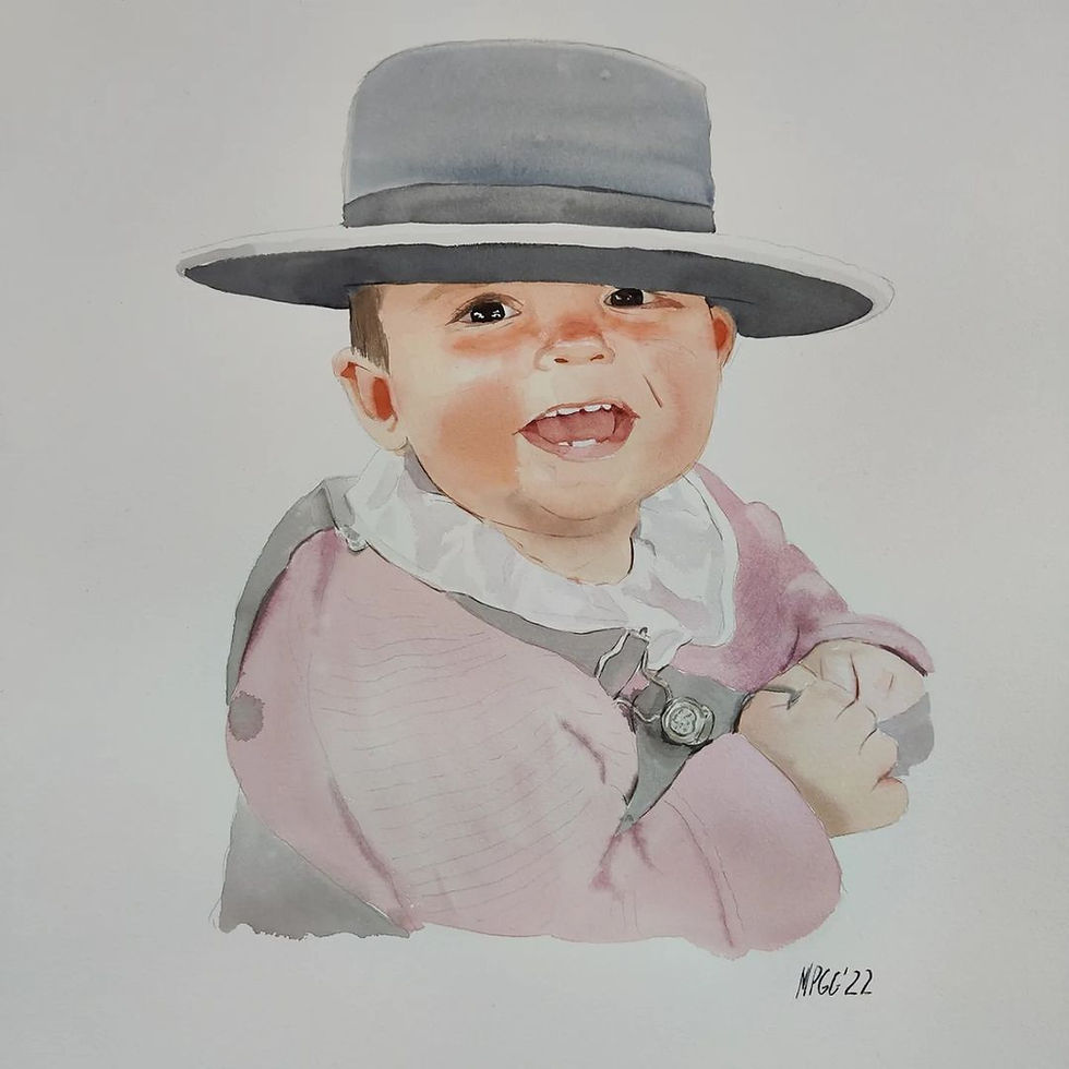 Retratos desenhados e pintados à mão a partir de fotografias fornecidas pelo cliente.